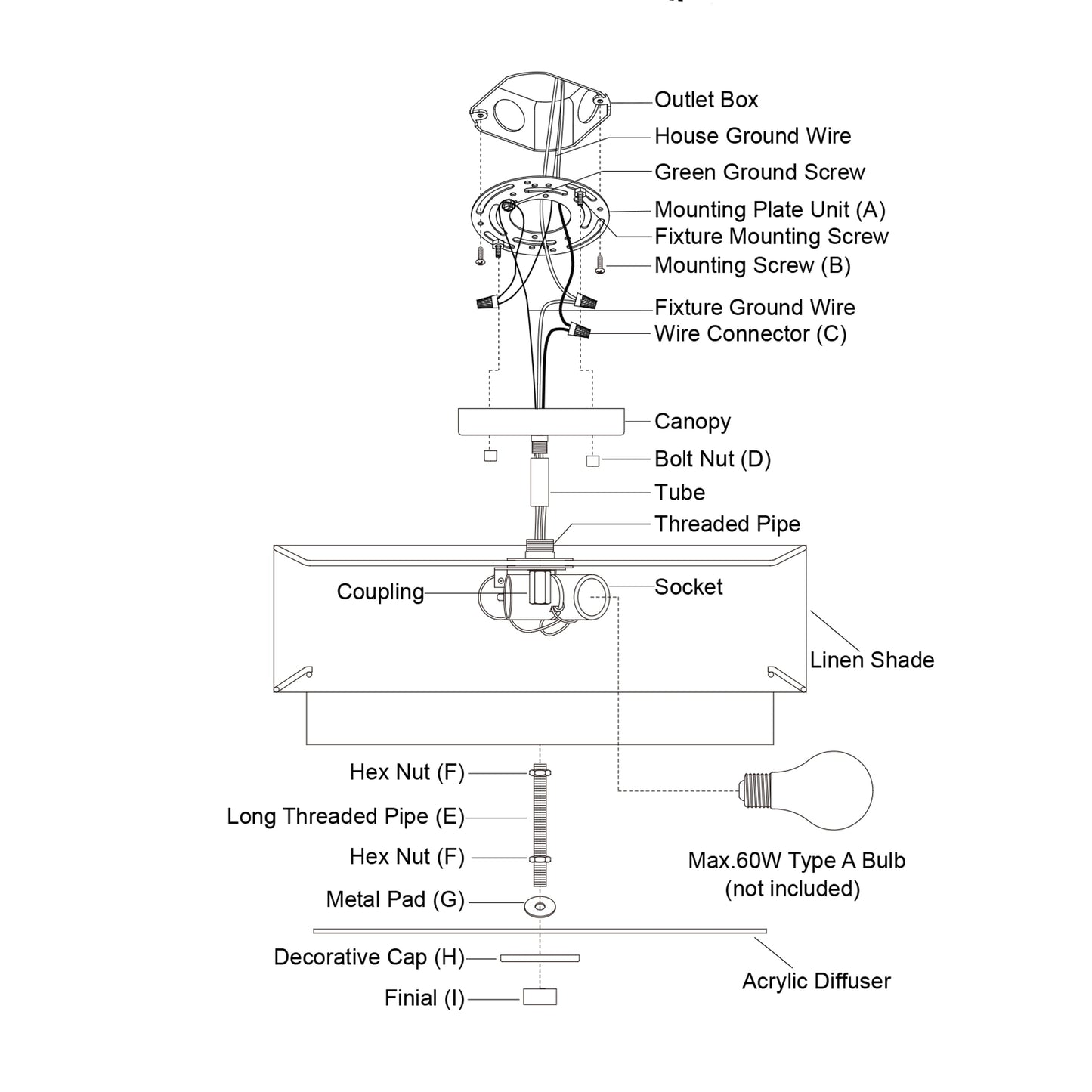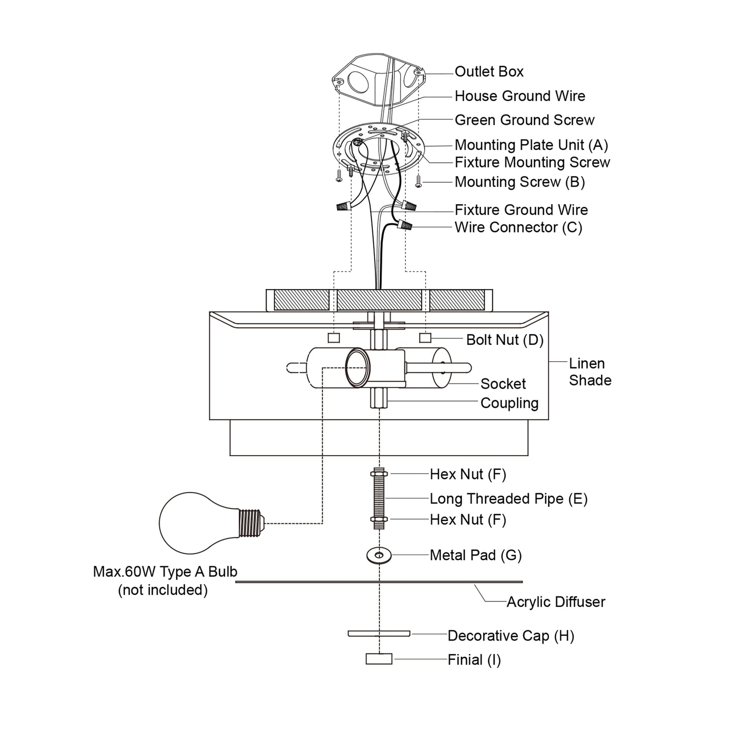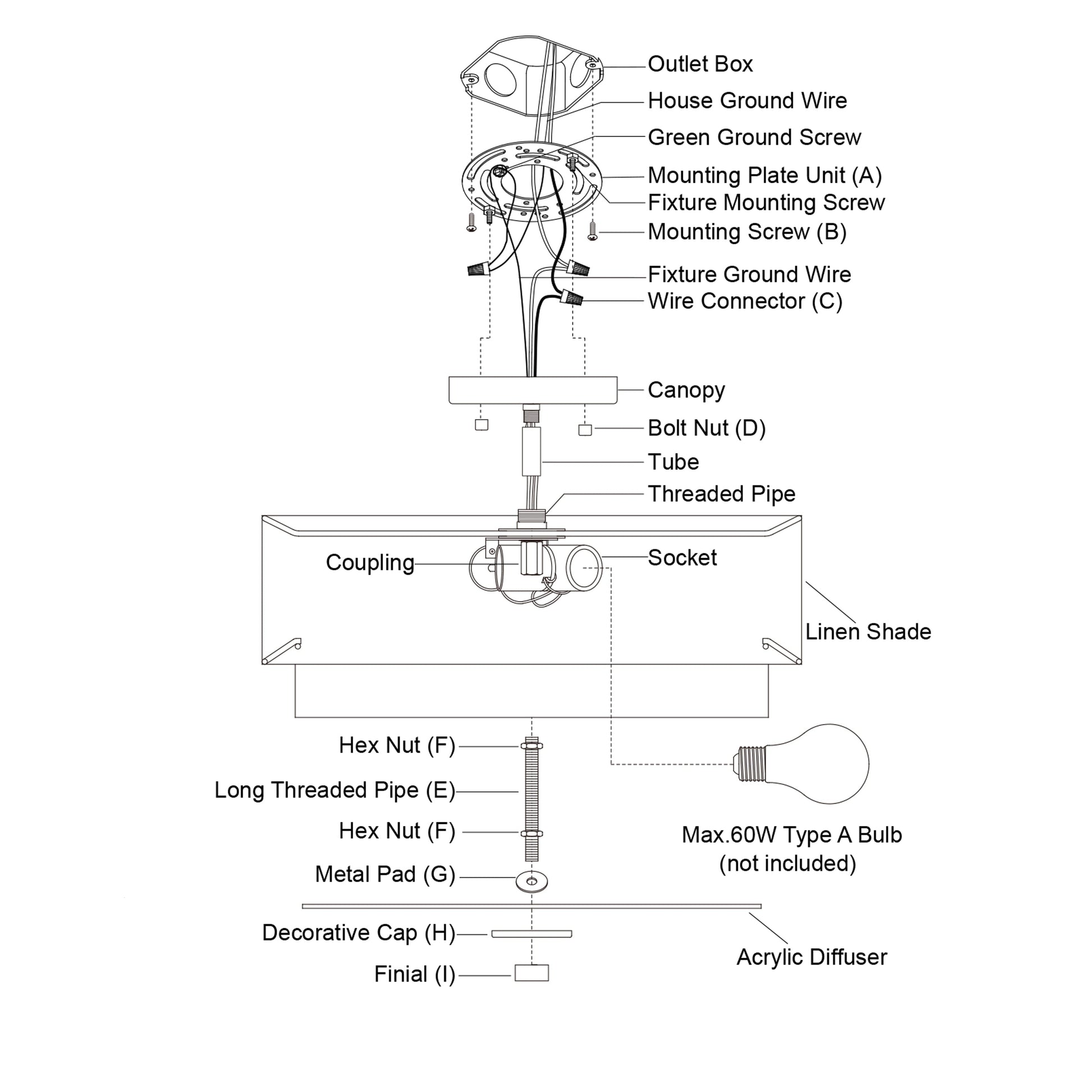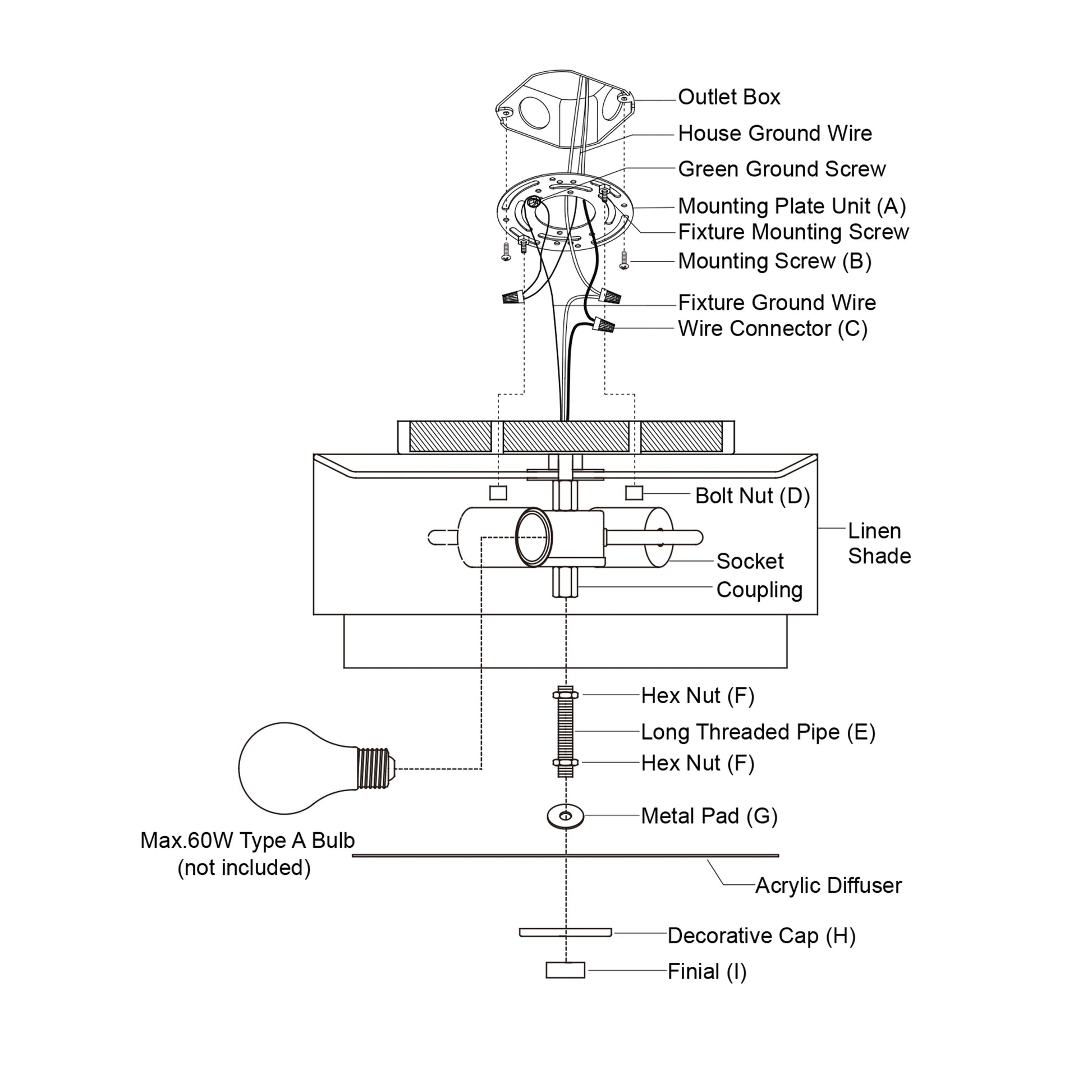 • Utilise des ampoules à culot moyen E26 de 60 watts (non incluses) ; compatible LED