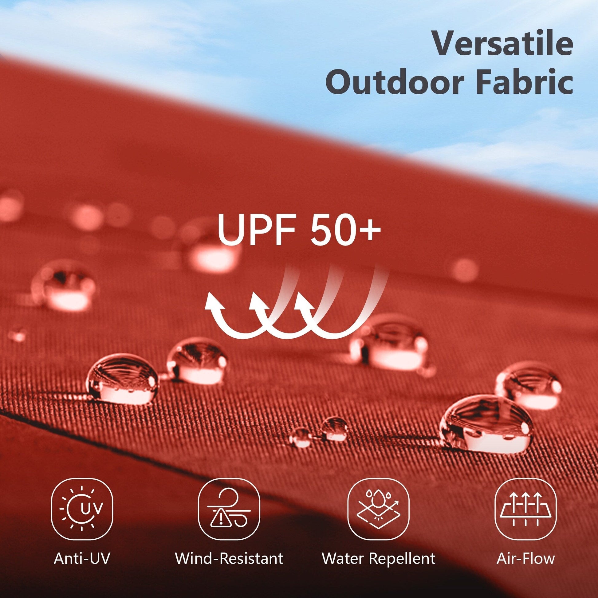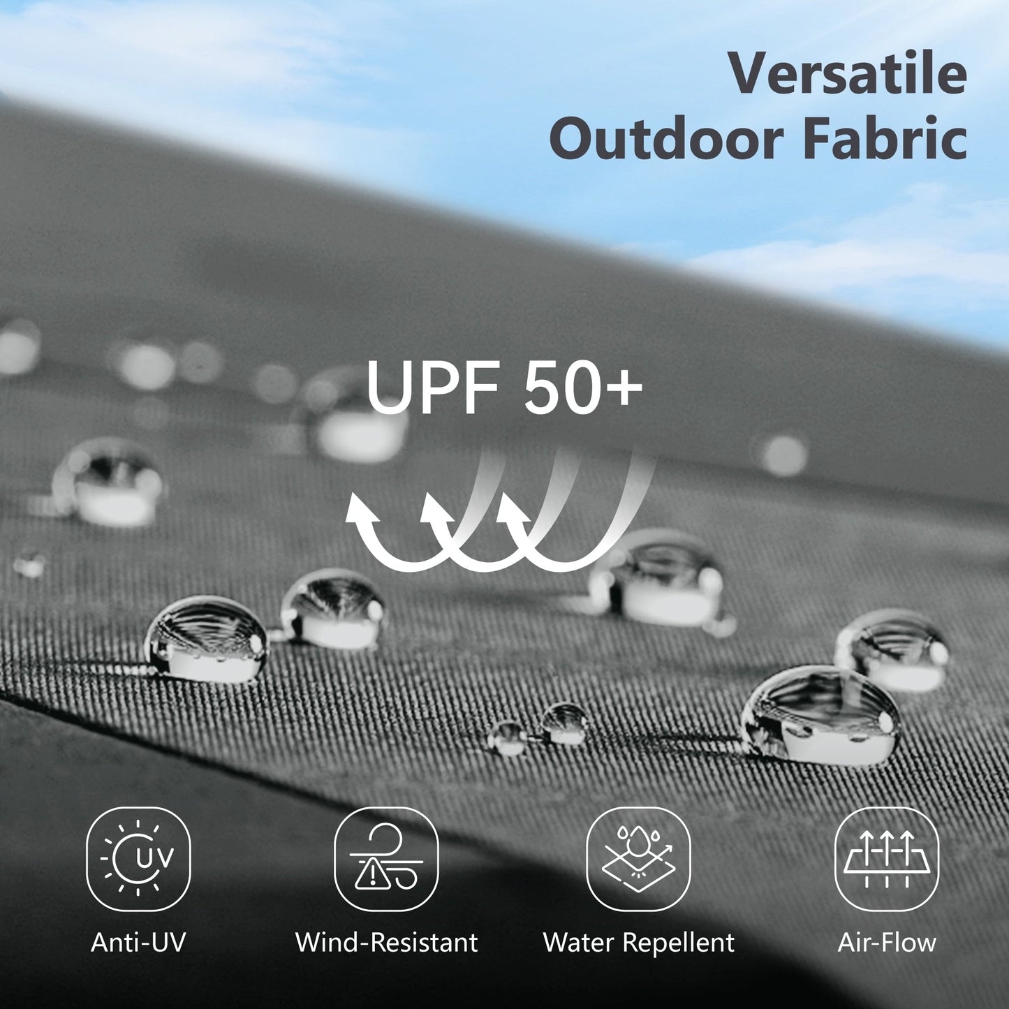 2. Fabriqué en tissu teint masse de 250 g avec revêtement PA pour une durabilité accrue, une imperméabilité, une résistance au soleil et une résistance à la décoloration. Ce tissu teint masse garantit une stabilité des couleurs jusqu'à 3 ans.
