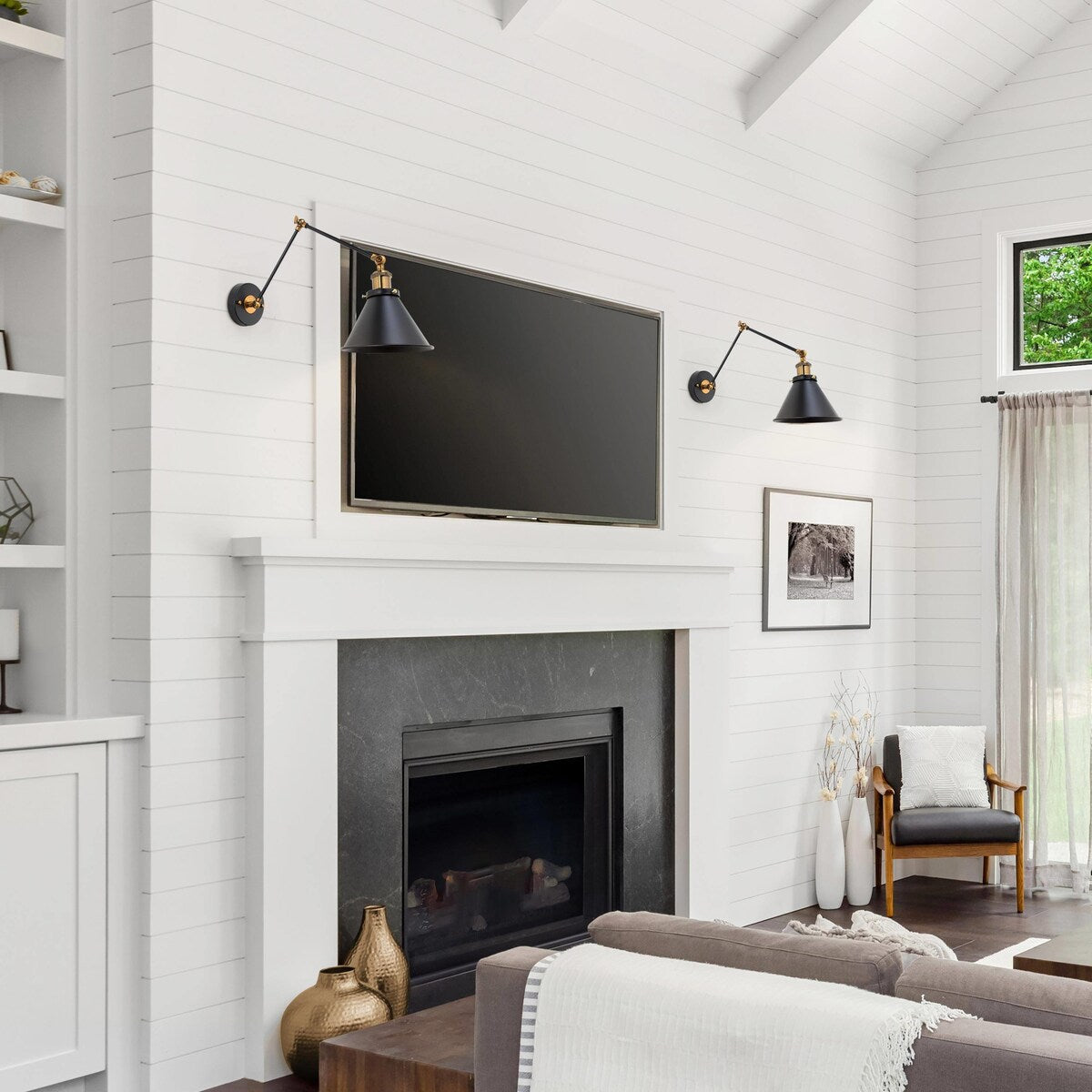 Ensemble de 2 appliques murales modernes à bras pivotant réglables Malryn, à brancher ou à brancher