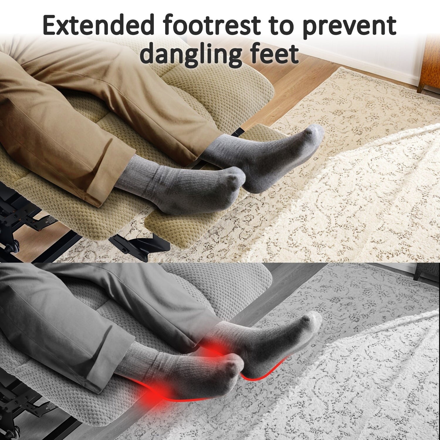 - Position infinie : Grâce au double moteur intégré, vous pouvez régler le dossier et le repose-pieds indépendamment dans la position infinie souhaitée, soulever, regarder la télévision et vous allonger à plat (angle d'inclinaison maximal : 165°)