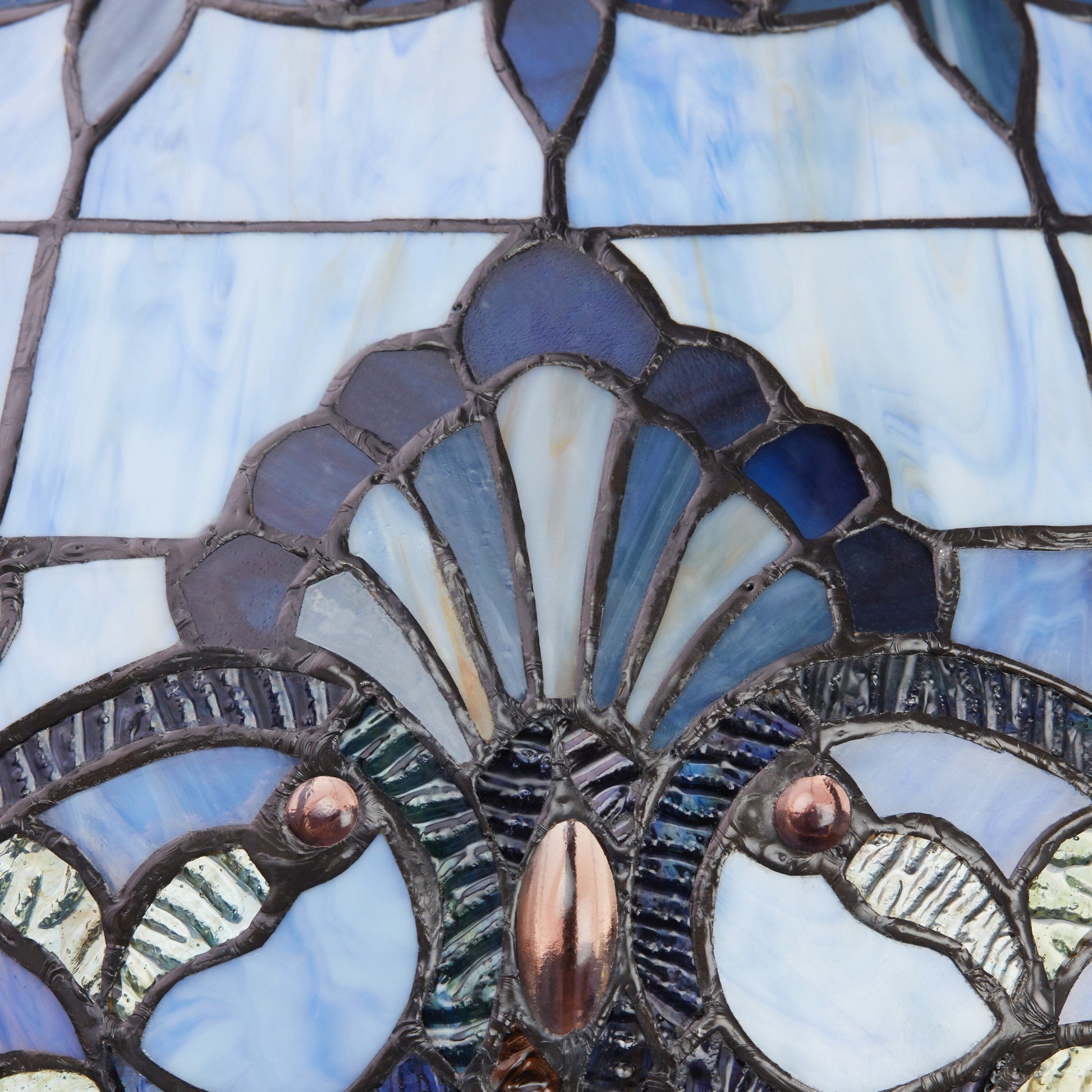 - Abat-jour réalisé à partir de 372 pièces de verre teinté bleu strié et de 51 cabochons