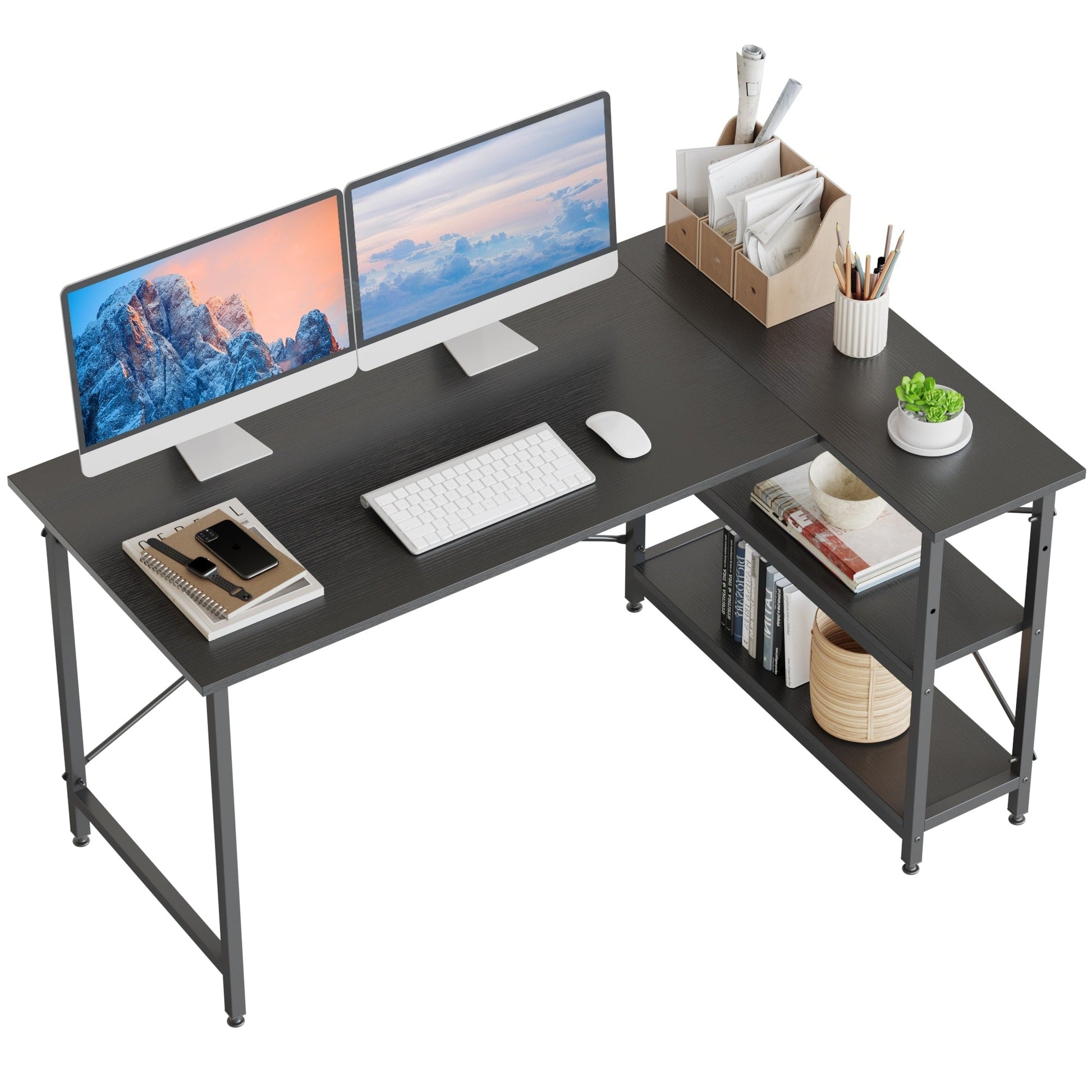 Petit bureau en L avec étagères de rangement Bureau d'ordinateur d'angle