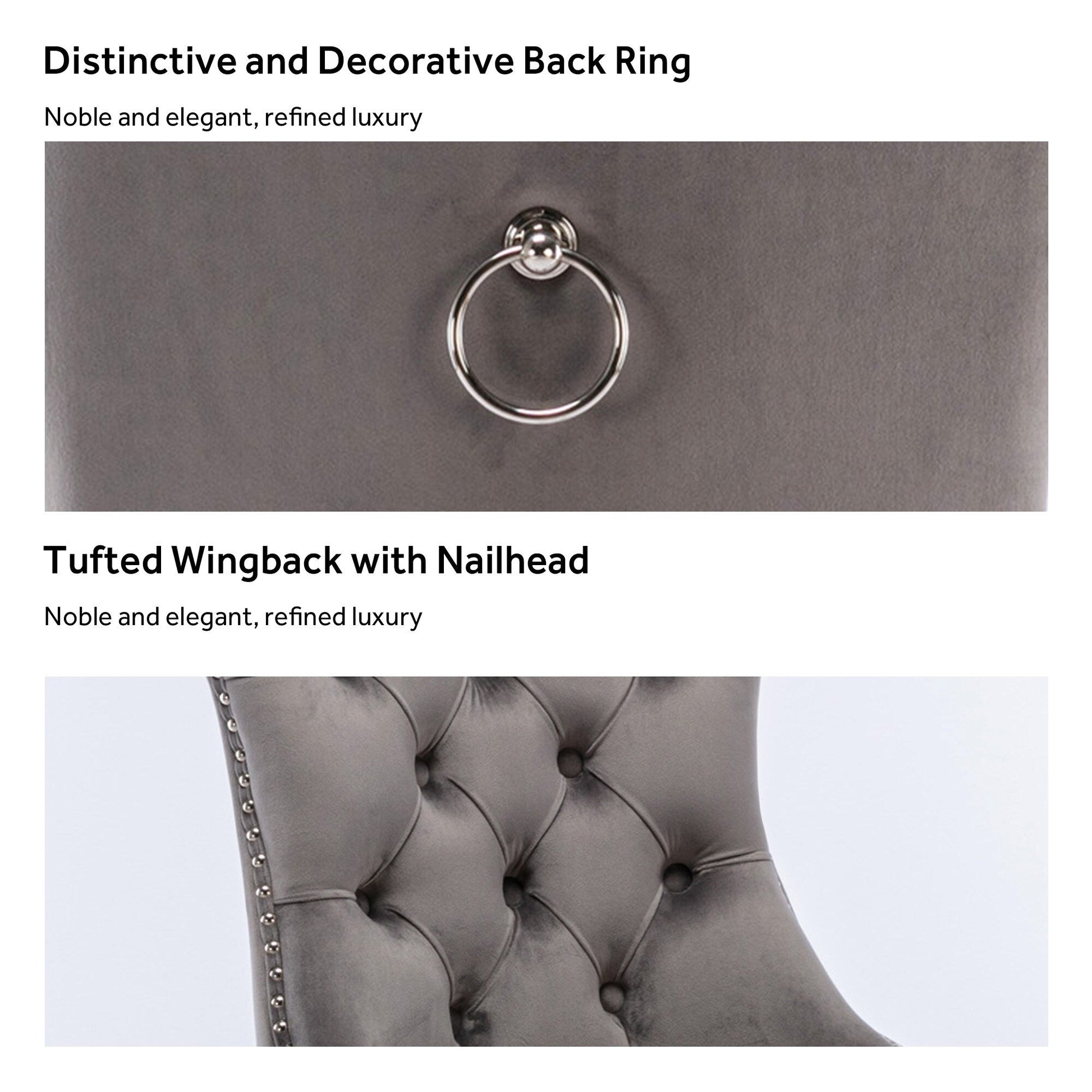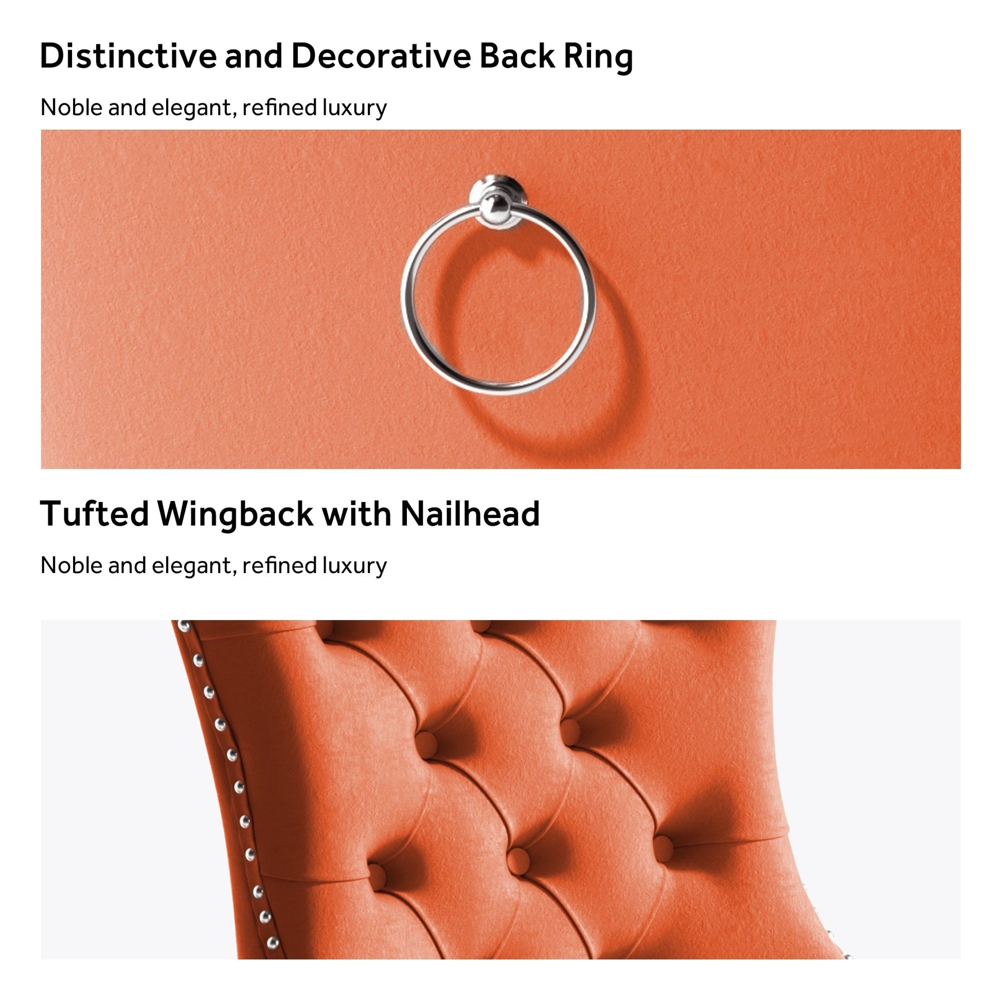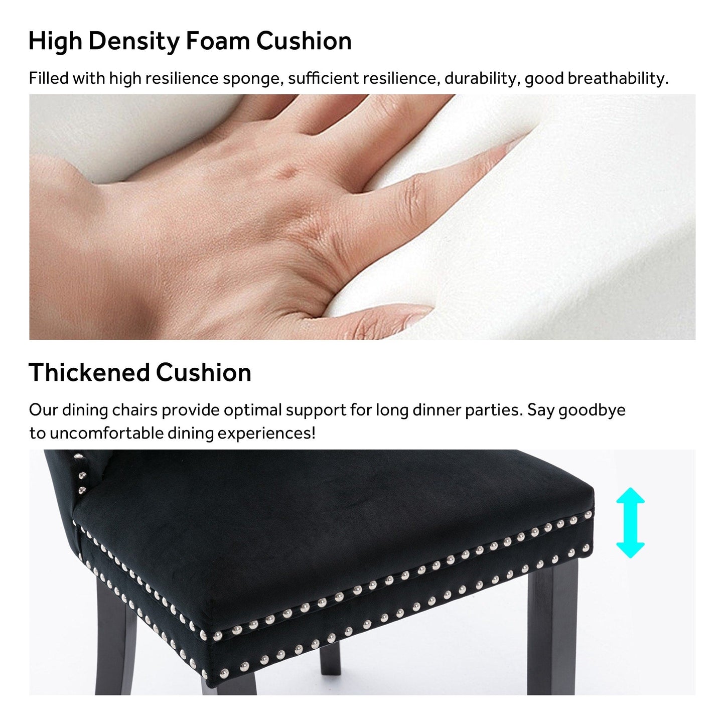 Ces chaises de salle à manger à oreilles sont fabriquées en velours de haute qualité, très résistant à l'usure et à la décoloration. Épais et luxueux, ce tissu offre un toucher délicat. Cet ensemble de chaises en velours arbore un style Mid-Century très moderne. Son dossier haut offre un soutien confortable et solide. De nombreux rivets décoratifs ornent le coussin et le dossier, lui conférant noblesse et élégance, tout en lui conférant une sensation de luxe raffiné. Nous fournissons des instructions et des vidéos de montage. Pour toute question, n'hésitez pas à nous contacter.
