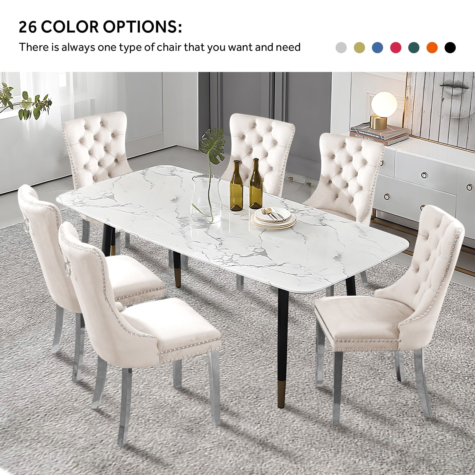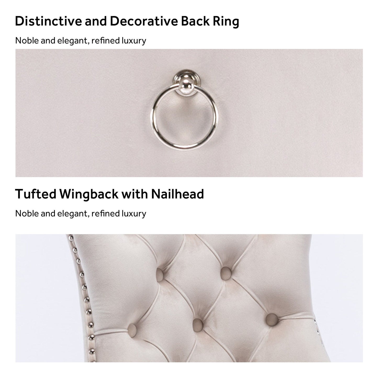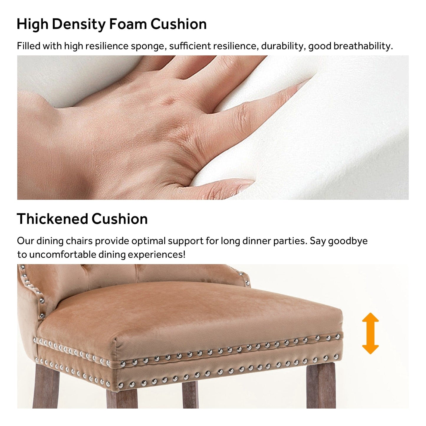 Ces chaises de salle à manger à oreilles sont fabriquées en velours de haute qualité, très résistant à l'usure et à la décoloration. Épais et luxueux, ce tissu offre un toucher délicat. Cet ensemble de chaises en velours arbore un style Mid-Century très moderne. Son dossier haut offre un soutien confortable et solide. De nombreux rivets décoratifs ornent le coussin et le dossier, lui conférant noblesse et élégance, tout en lui conférant une sensation de luxe raffiné. Nous fournissons des instructions et des vidéos de montage. Pour toute question, n'hésitez pas à nous contacter.